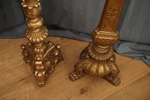 Here we have two carved barok floor standing candlestands, the smaller possibly late 18th century, re-gilded in the 19th and the larger is 19th century, very niceley carved, probably Italian.