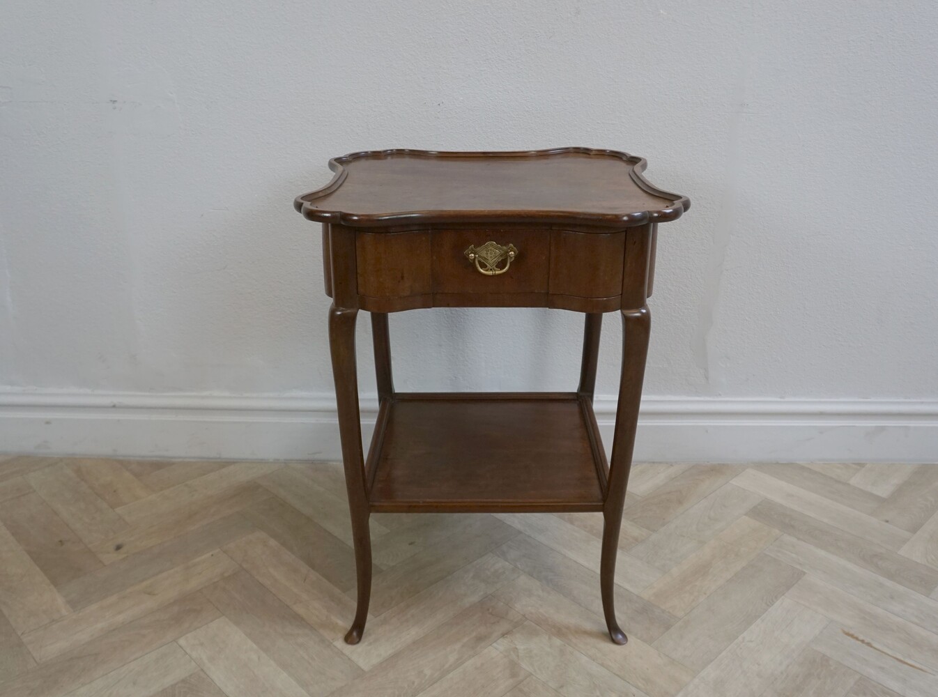 Lovely quality Dutch side table in mahogany with a lovely carved out scalloped top, a drawer and an under tray. Late 19th century in the style of the late 18th century. In good original condition, wax finished.