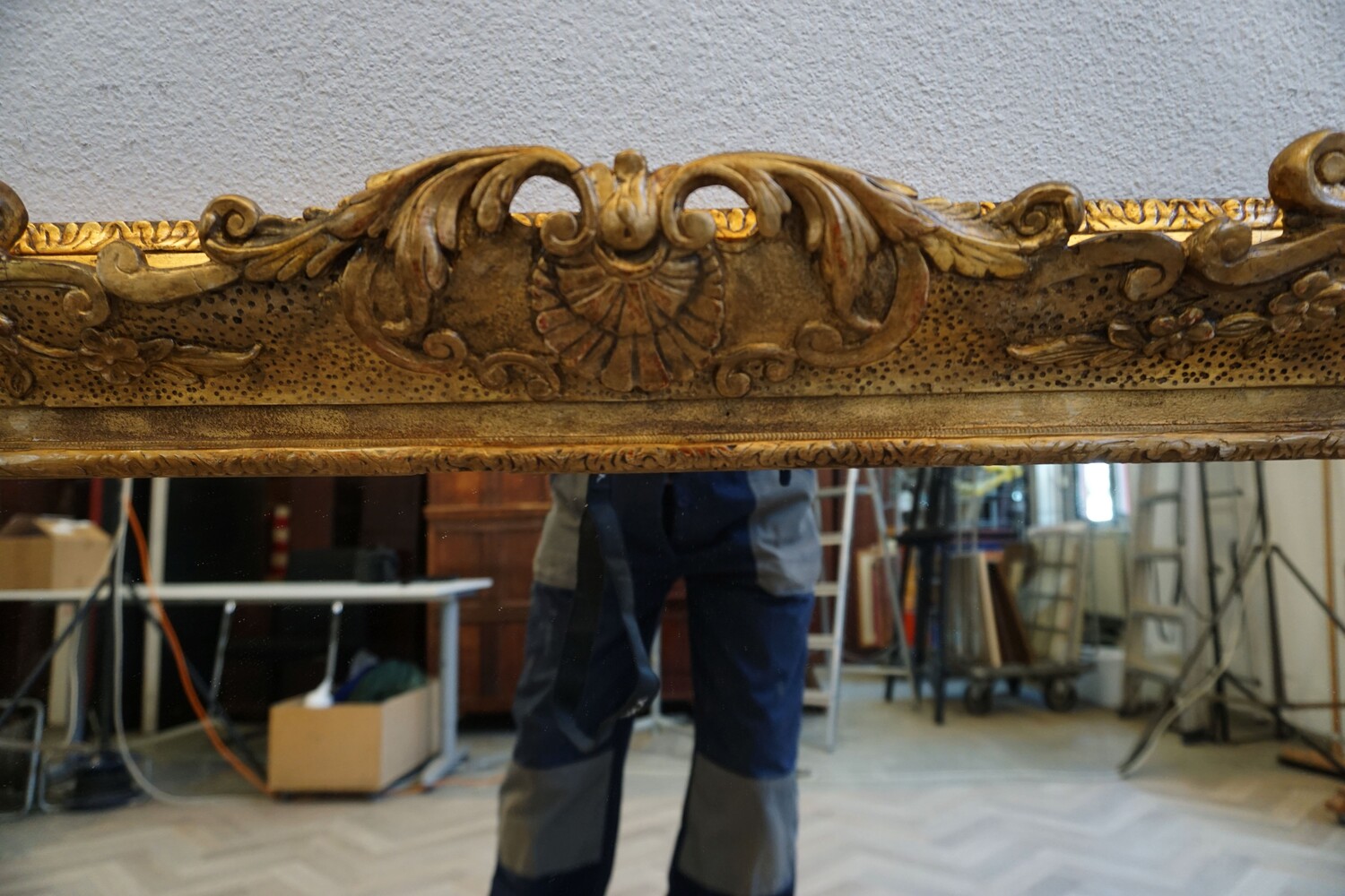 19th century ornate French mirror, lovely ornamentation fully reststored, wood frame with plaster decoration.