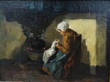 Lovely fireside scene in a rural dwelling by well known dutch artist Hendrikus van Langen (1874-1964), maroufle oil on board, signed left bottom in good condition with minimal signs of age.