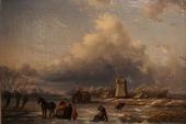 19th century winter scene oil on panel unsigned,there is a tent on the ice with refreshments and soup for the skaters, nothing changes !