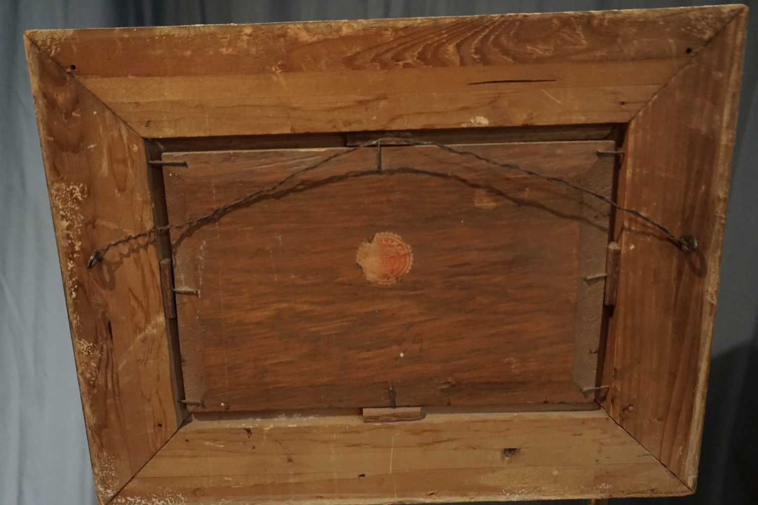 Charming little panel with a woodland path with a farmer and his sheep, or goats, beautifully executed work in the style of H Houben.