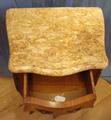 Lovely inlays tulip wood, and bombe shape, with marble tops.