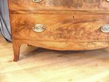 Lovely early 19th century bow fronted mahogany chest of drawers, lovely Spanish curl draw fronts, stylish model with a nice set of old handles, nice rich colour all origonal wax pattined surfaces.