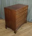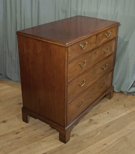 Here's is a remarkably clean 18th century mahogany chest of drawers in the most desirable size. it is rare to find one in this good state with original feet, handles etc, it has had light corrective restoration new drawers runners and French polish to the top, the rest is wax pattined, nice straight bracket feet, dates to about 1780 I guess.