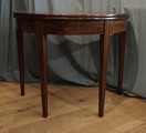 Lovely solid mahogany late 18th century foldover demi-loon tea table, double action hinged rear legs with a fold over top making a round tea table.