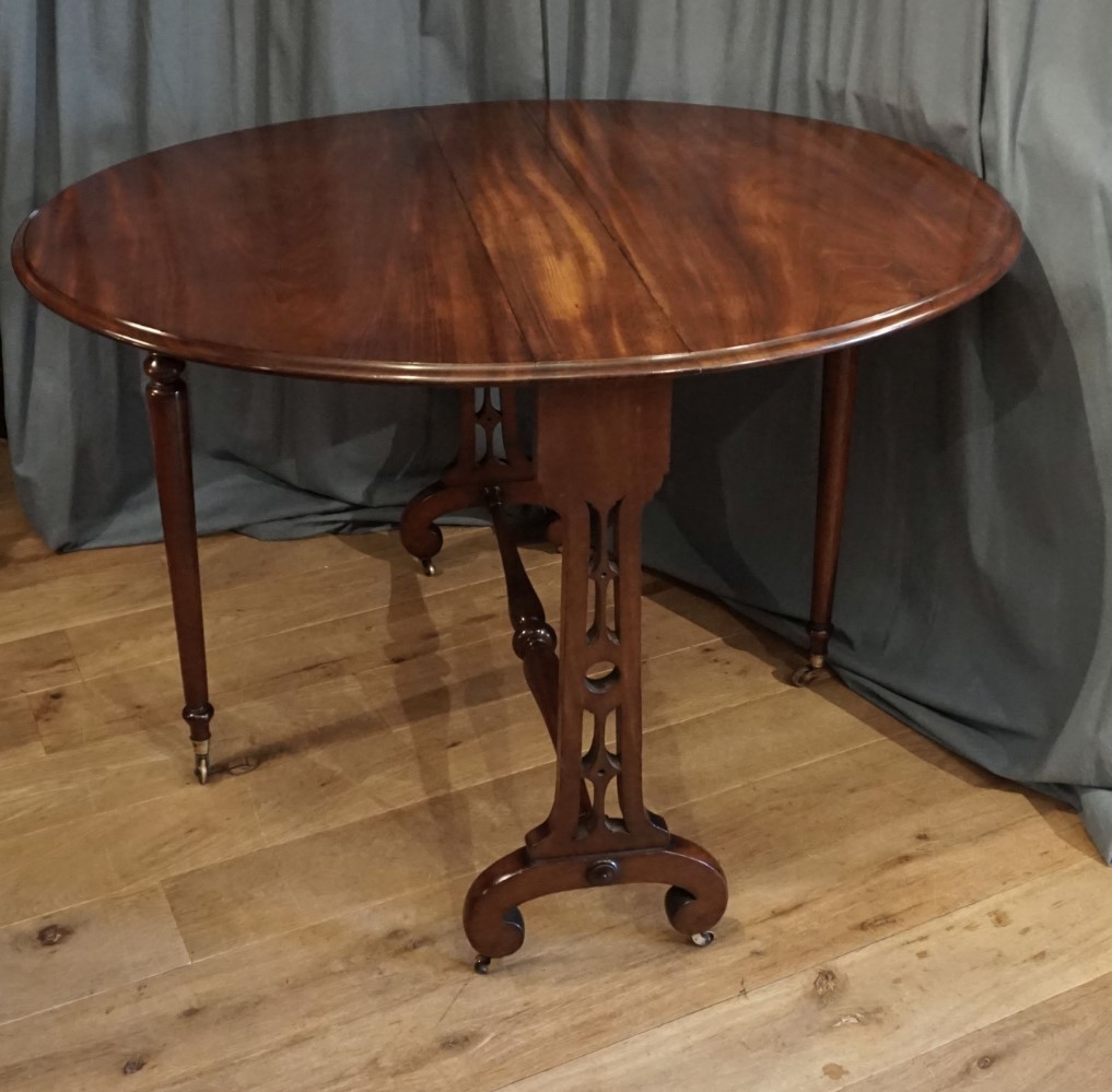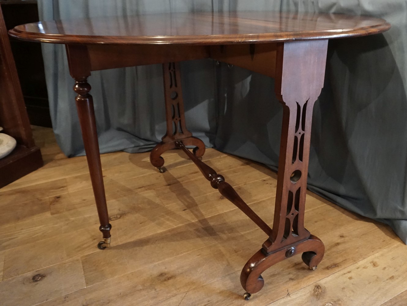 Lovely Art Nuevo sutherland table in superb original condition, high quality piece made of high quality solid mahogany, lovely original Langebear brass castors.