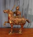 Early 20th century carved and painted Tang style horse and riding warrior, 42cm x 40cm.