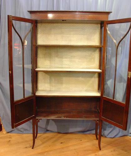This is a mahogany china cabinet from the 1920's, quite and elegant one nice deep colour, lining is origional could be improved upon with some new fabric, can be arranged for a little extra.