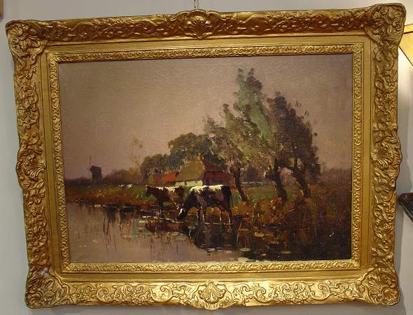 Oil on canvas probably painted roughly 1900 , dutch landscape painted in the Haags school style , not signed .