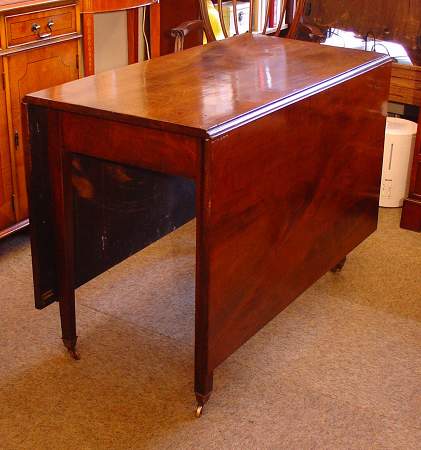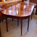 George III Honduras mahogany dining table with two D ends which can be used as console tables or put together as a square or attached to the dropleaf centre table seats up to ten people.