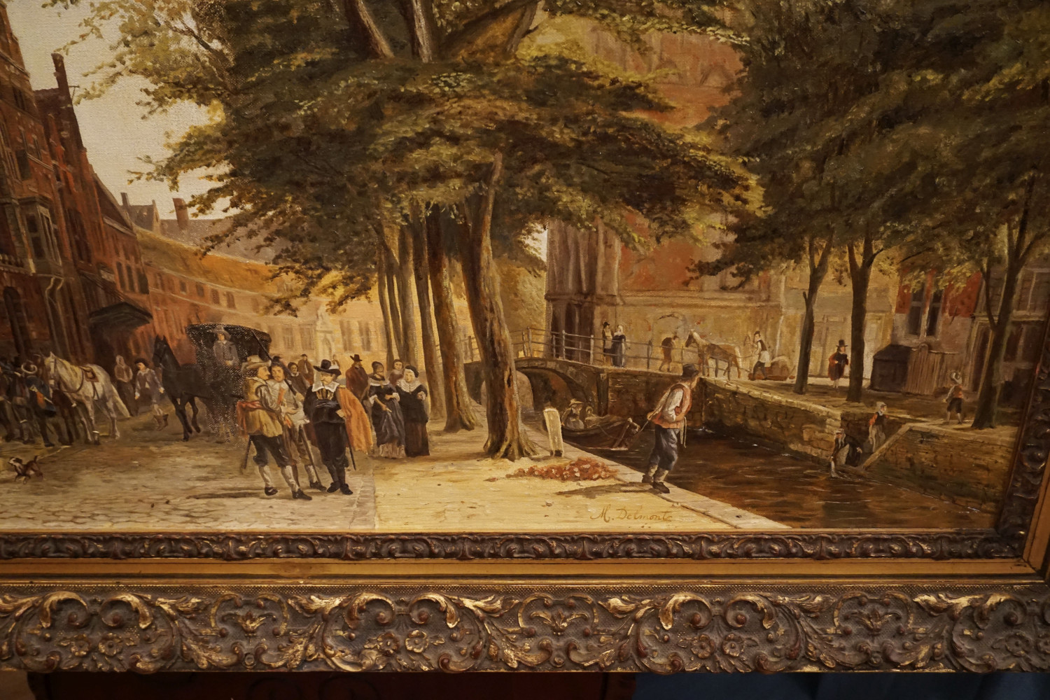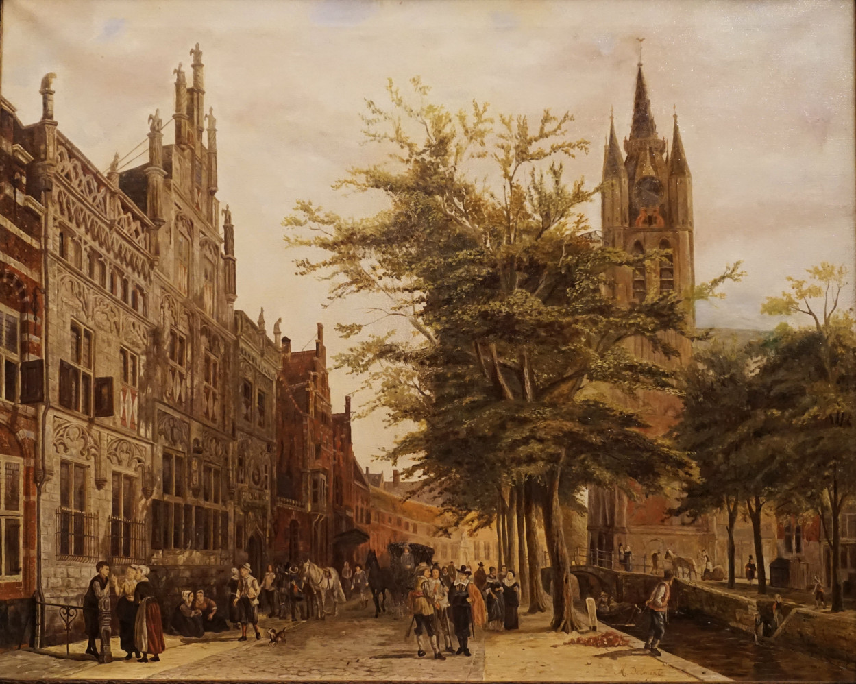 Here is a lovely rendition of the famous painting of Delft by Cornelius Springer but by the well known artist Maurice Delmonte. Maybe 30 yrs old.