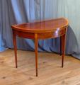 This is a beautiful mahoagany with satinwood inlaid fold over tea table from around 1800, top quality piece exotic woods loads of boxwood and ebany stringing, super colour inside and out, double action back legs to support the folded over top.