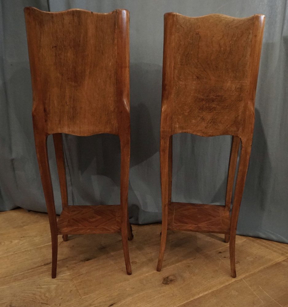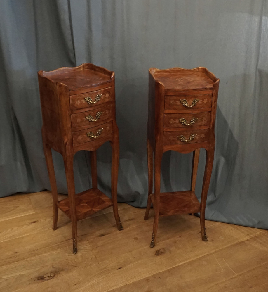 Here we have a lovely set of vintage French bedside table in kingwood veneer. Unusualy small sized and charming.