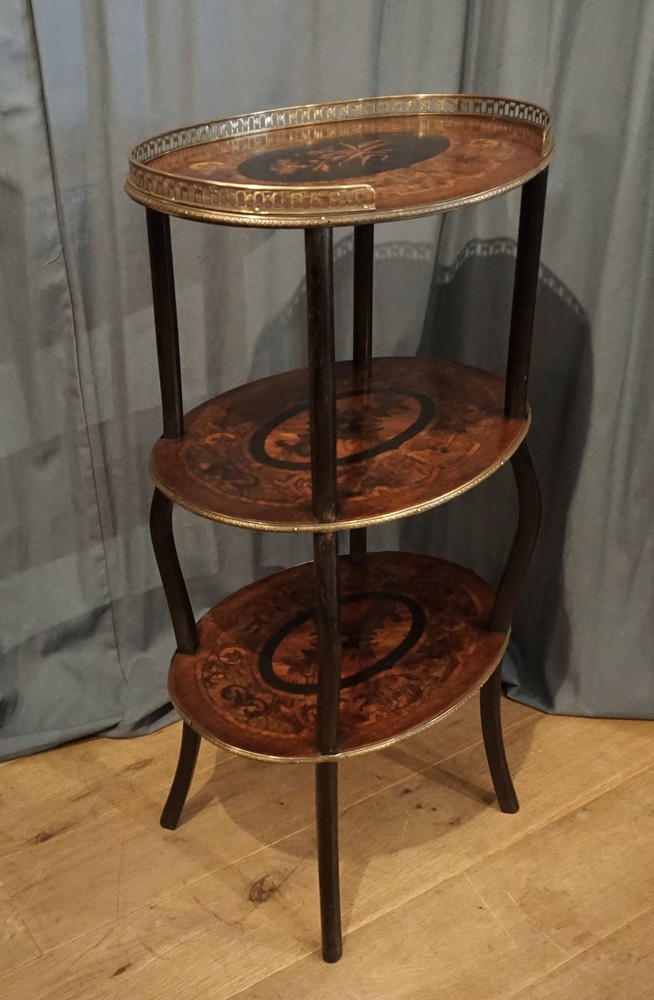 Attractive 19th century French etagere with three shelves lovely delicate marquetry in remarkably good state!