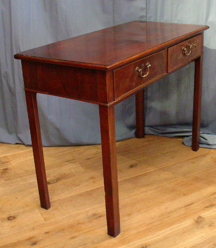 This is a super small sidetable 18th century in mahogany, nice refined quality, curl fronted drawers, oak linned, there is eveidence of ink stains so it is likely that this piece was used as a small writting table, it is very solid good peice of georgian furniture with a nice wax pattina, pieces like this are really not very common these days.