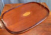 This is a mahogany tray from around 1900, lovely inlaid shell centre, wax finished.