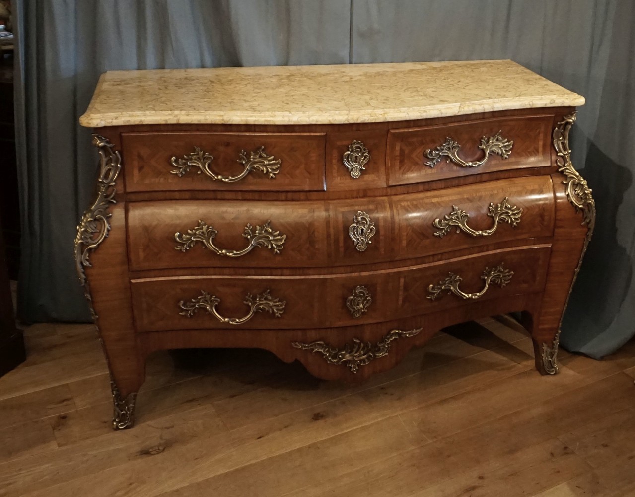 This is a magnificent parquetry walnut vintage comode from the 20's,lovely warm walnut veneers interior all from oak, very robust and decorative piece, would suit a castle!