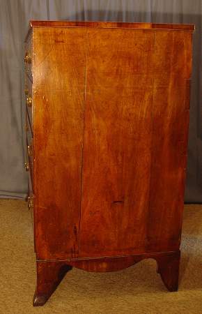This is a particulary fine example of an early Regency splayed foot comode in mahogany inlaid with satinwood, ebany,boxwood and rosewood, with a beautiful colour and patine especially on the book matched drawer fronts with ivory keyholes .