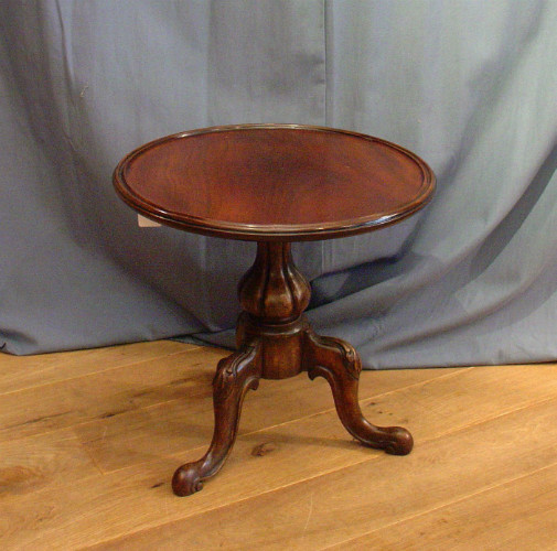 This is a Victorian tripod table in mahogany, lovely carved base with a thick turned mahogany top.