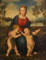 Here is a lovely painted panel copy of the famous Madonna del Cardelino from Raphael painted in 1506. the frame is stunning Florence carved wood and gilded.