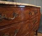 This is one of a matching pair of Vintage French comodes. Very clean condition veneered with kingwood and marquetry flowers with cast brass decoration, good colour and lovely marble top.( price is for one)