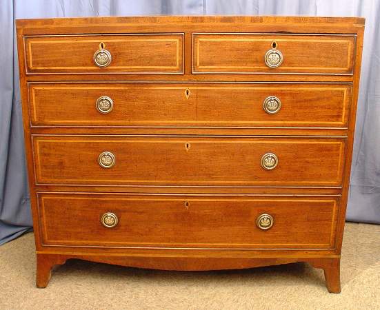 Lovely Regency mahogany comode all inlaid with boxwood, flush top crossbanded, splayed front legs, origional wax finished surfaces, Prince of Wales feathers on the brass ring plates.