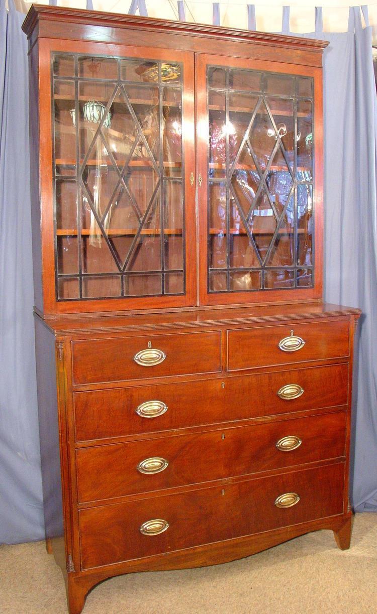 The top carcase doors are barred with ebany and has nearly all the origional panes of glass, cornice is also inlaid with ebany. finish is origional and only based on wax.