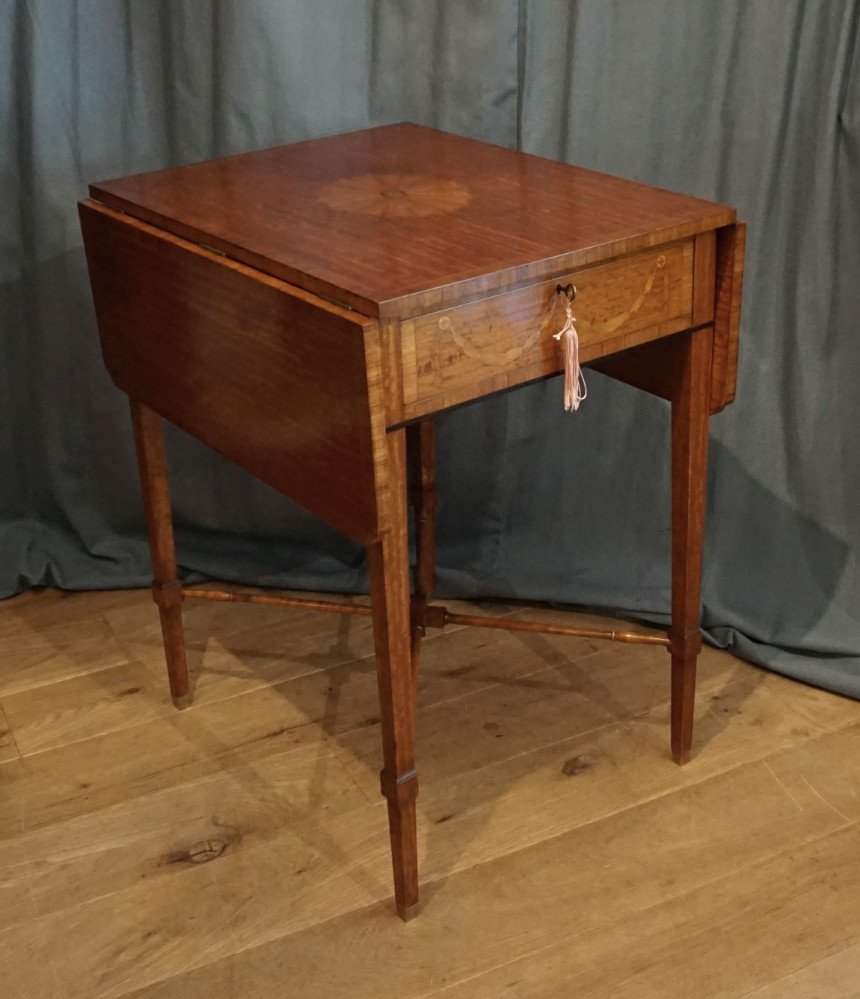 Very fine quality inlaid satinwood pembroke table made by the famous Viennese furniture factory ‘Portois & Fix Wien’, early 20th century, seldom do I have a piece of furniture so finely made and finished as this piece, completely original with the stamped makers name on the key.