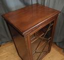 Here's a useful Edwardian display cabinet or small bookcase, actually originally made for storing piano music, has some lovely delicate inlays and is in remarkably clean condition.