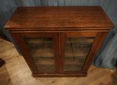 Here is a 19th century two door bookcase with two glass doors and three adjustable shelves with leather dust flaps.
