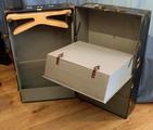 Steamer trunk, brass bound has a large ladies hat drawer inside as well as the normal pull out hanging rails etc. Has been shipped on Steam ship Andes.