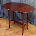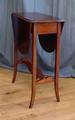 This is an Edwardian occasional table with a top that swivels to raise the two flaps. Has an inlaid top and legs, quite a simple but elegant design.
