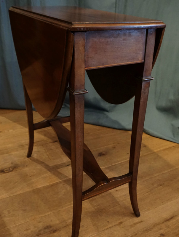 Here is a very clean little mahogany table early 20th century, the top rotates on the base to make a larger oval table.