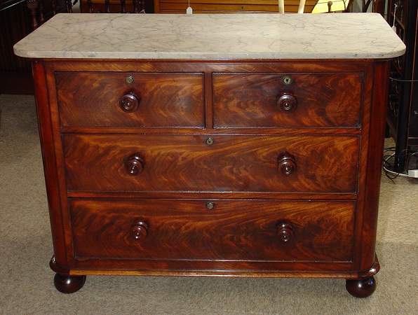 Victorian Comode from 1860 , nice quality with mahogany curl on the drawers and a good marble top , completely origional size 110cm x 53cm x 82cm.