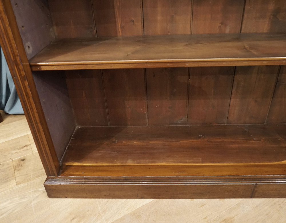Here is a lovely open bookcase in walnut with four adjustable shelves, nice robust piece dates back to the early 1900's also has a nice polished top with a gallery.