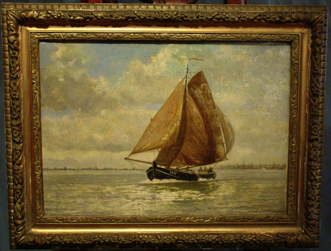 Here's a very good small painting of a dutch sailing fishing boat, painted by quite a famous artist who was much aclaimed for his portraits, william van Nieuwenhoven 1879-1974.