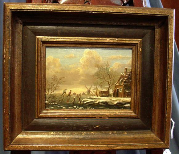 This is a charming winter scene 19th century on a wood panel, it is signed but un readable, nice original work.
